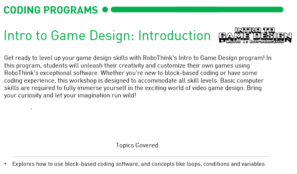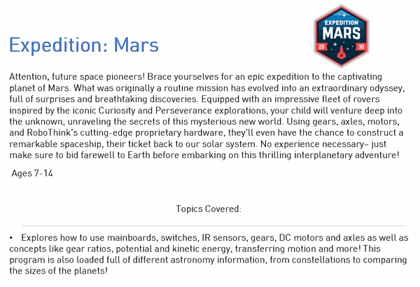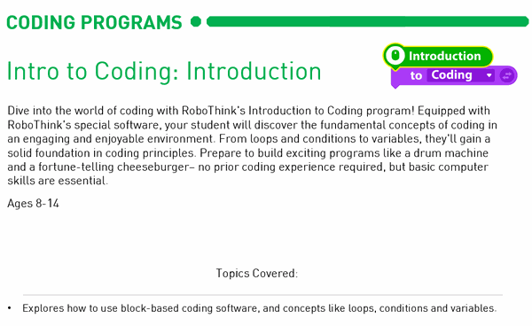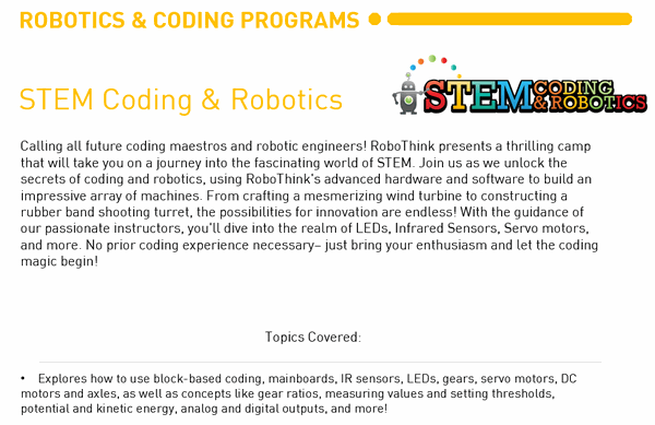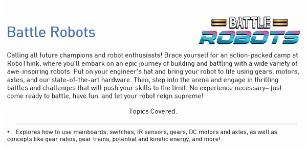Sibling Discount: Registering more than one child? Please contact us for a discount code before checkout! (fairfax@myrobothink.com)